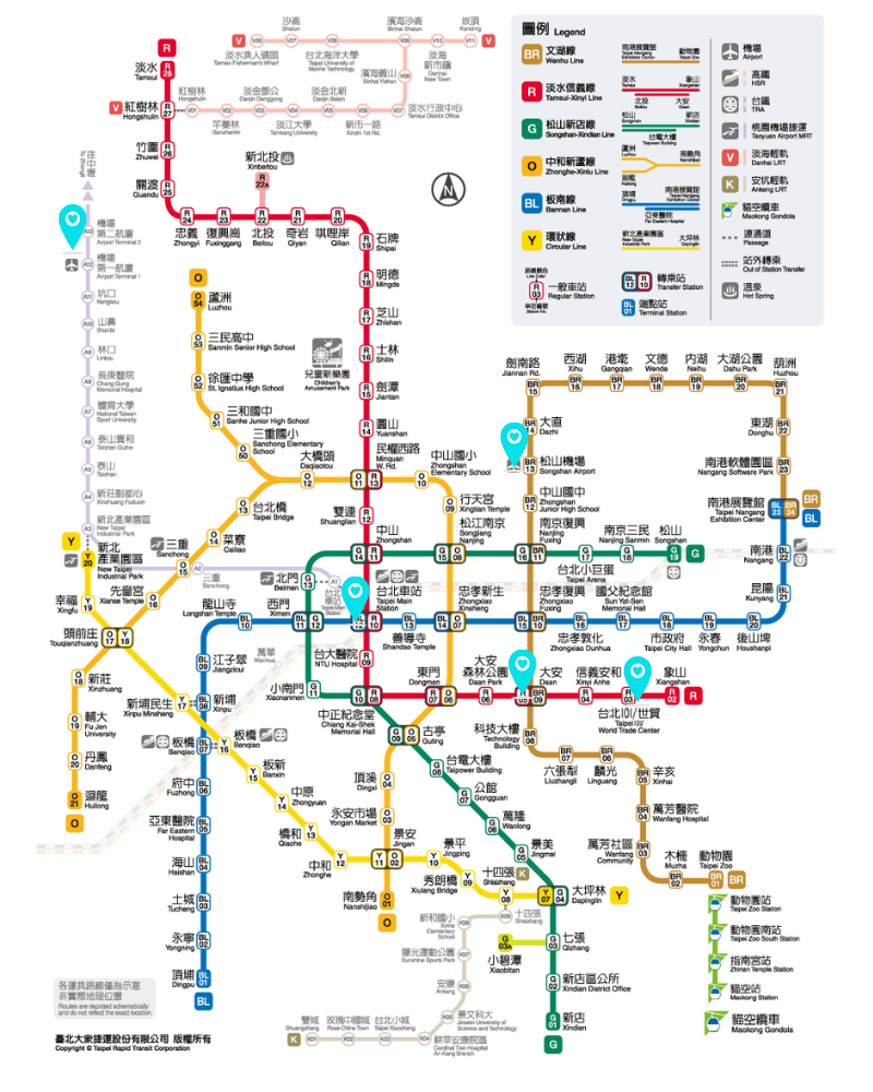 - Metro Tickets: NT$20~NT$60. IC cards, credit card, or electronic payments are accepted.