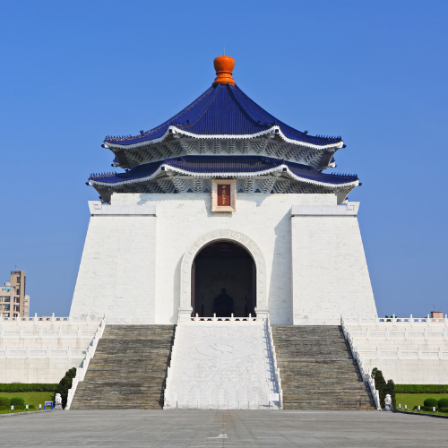A grand monument dedicated to Taiwan’s former president, surrounded by serene gardens and majestic architecture.
