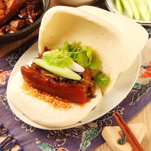 Often called the Taiwanese hamburger, gua bao is a fluffy steamed bun stuffed with braised pork belly, pickled vegetables, and crushed peanuts.