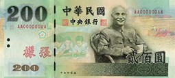 The Republic of China's unit of currency is the New Taiwan Dollar (NT$), which has five denominations in paper money and five in coins. Paper money comes in NT$2000, NT$1000, NT$500, NT$200, and NT$100 denominations. Coins come in NT$50, NT$20, NT$10, NT$5 and NT$1 denominations.
